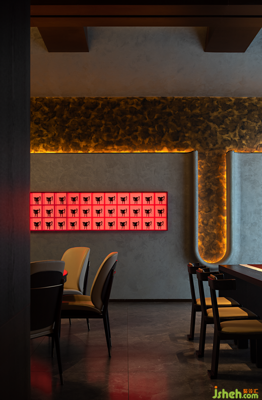 “座上客常满,樽中酒不空”。 金樽本是庆典宴饮的礼制酒器,包间以“金樽醉”命名,潮菜餐厅设计用场景具现意象,凸显了宴饮宾客尊贵的身份、地位。