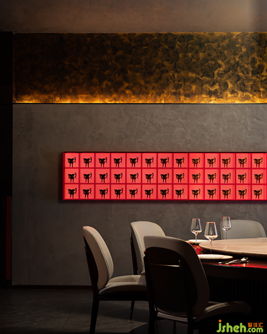 整体空间以传统宫宴文化中常用的金色与红色为基底,灵动刻画文客嘉宾“拟把疏狂图一醉,尽将诗情沁金樽”的叙饮豪情。