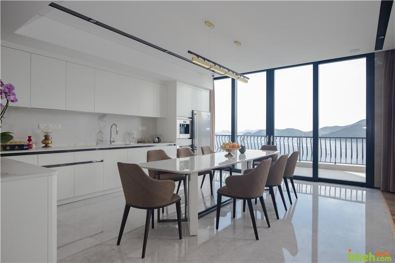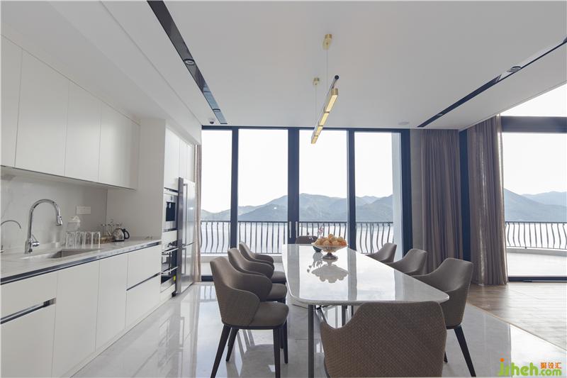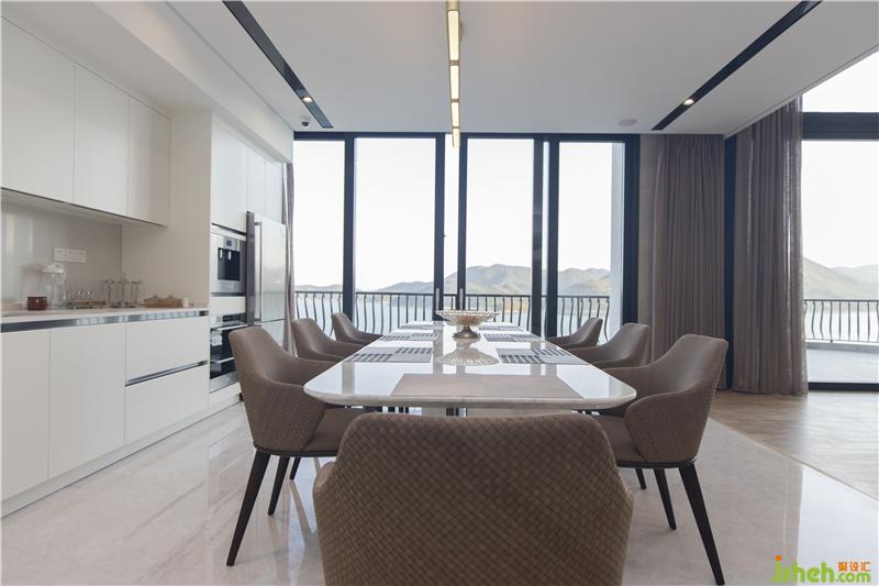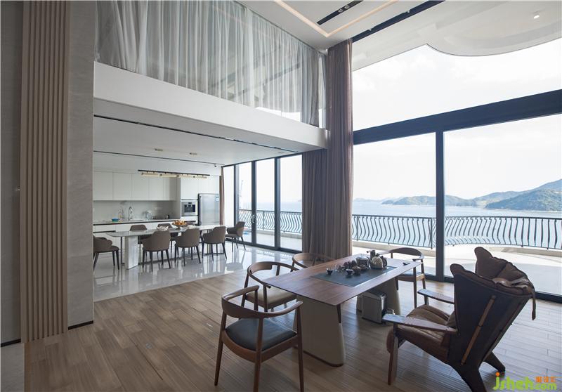 中式与西式的连贯通透融合是文化的包容,通透的视觉上明朗、鲜明、该处独特体现空间更加优雅、温柔的空间,把房子融入大自然、将天空、大海带进家里。