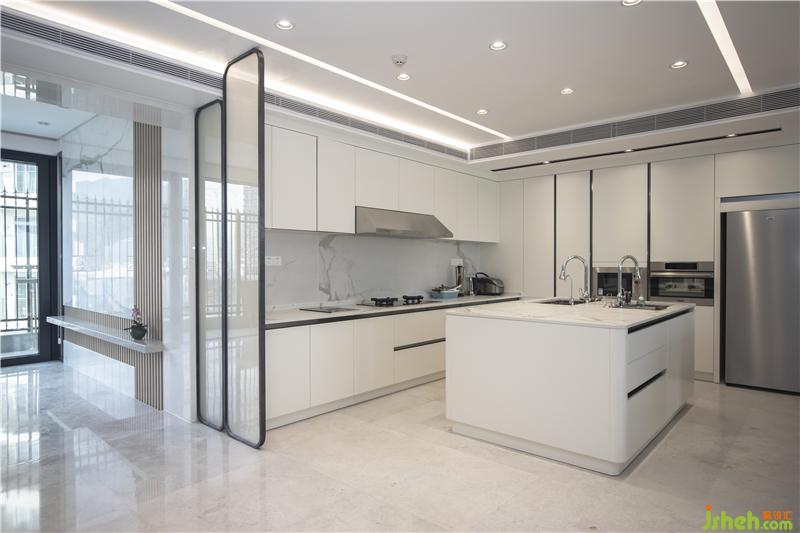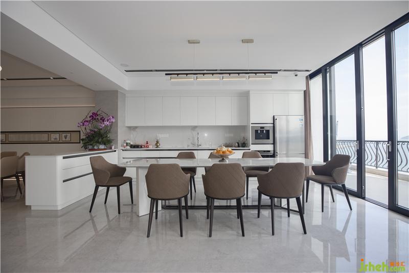 全开放式厨房设计师将业主生活情景化设计、每当家庭大聚会一家老小围聚在这2.5米长的岛台汇聚情景交融,是无形中引入生活情景的延伸设计。深圳装修设计保持一种家庭的观念、从材质-色调-功能-五金洁具陈设处处尽显巧致。