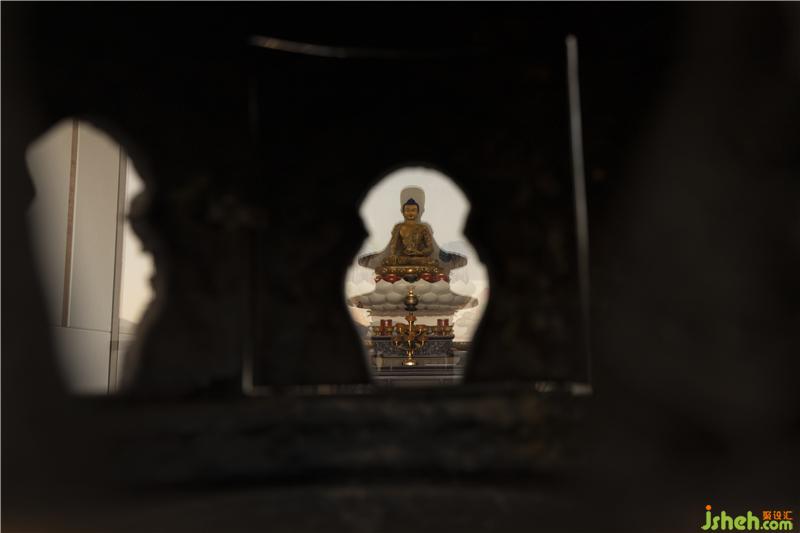 随入到佛堂、在极其现代的空间中引入佛堂、利用意念的“空”、“无”、“白”、“虚”的设计概念引入,人是主体、平静虚无的空间、波澜壮阔的大海通过5.2米一面大玻璃引入佛堂、给予多一份无限想象的空间。