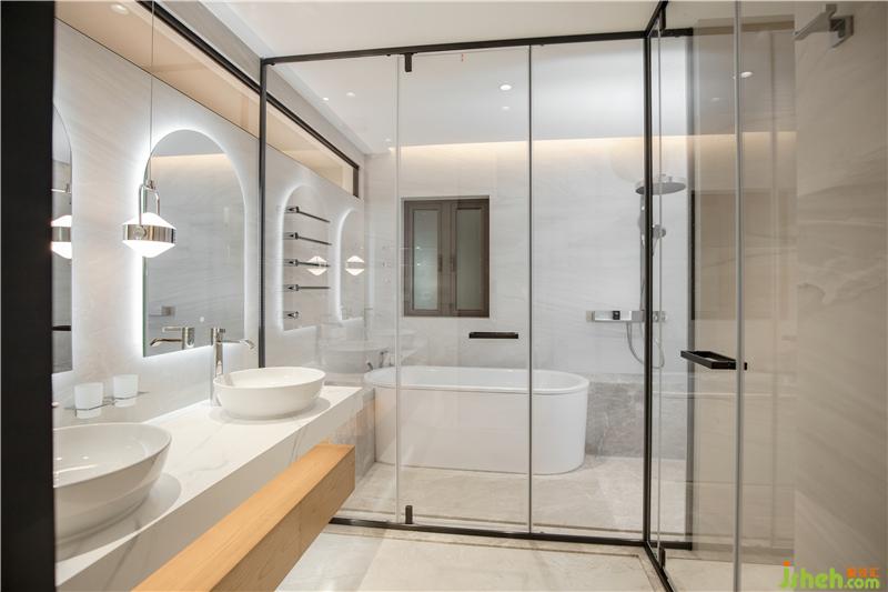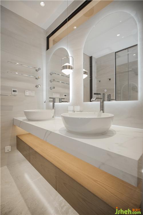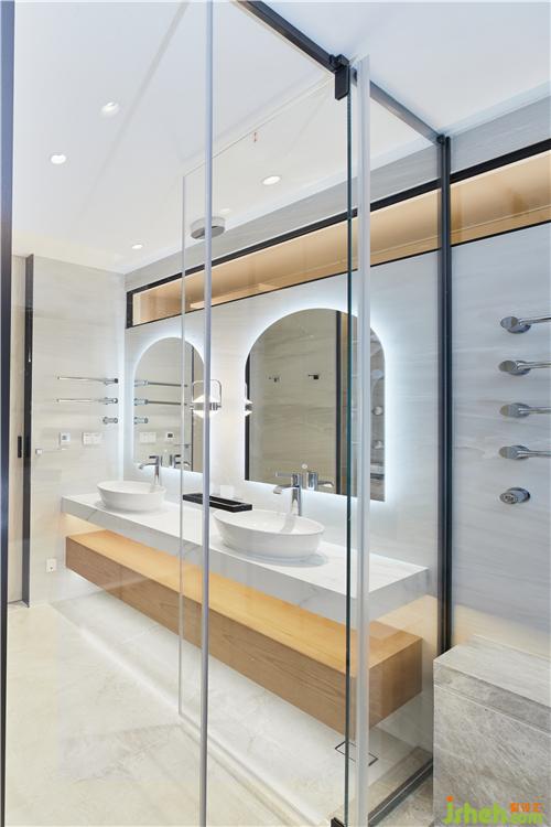集汇设计将其隔墙不到顶贯穿通透、让一丝阳光进入卫生间,通过光与影的对话来串联空间内外的视觉美学互动,在此放松身心,尽享悠闲时光,体现现代格调的高雅每一处的细节都彰显万豪的品质与精致。