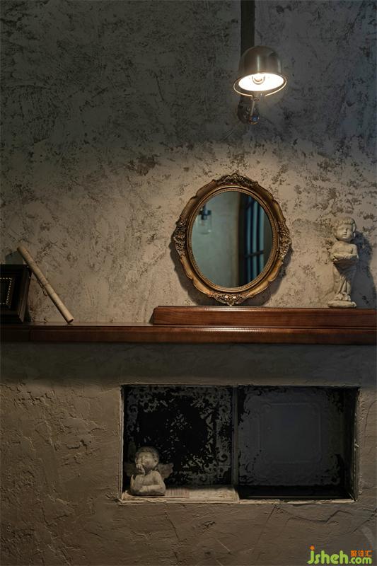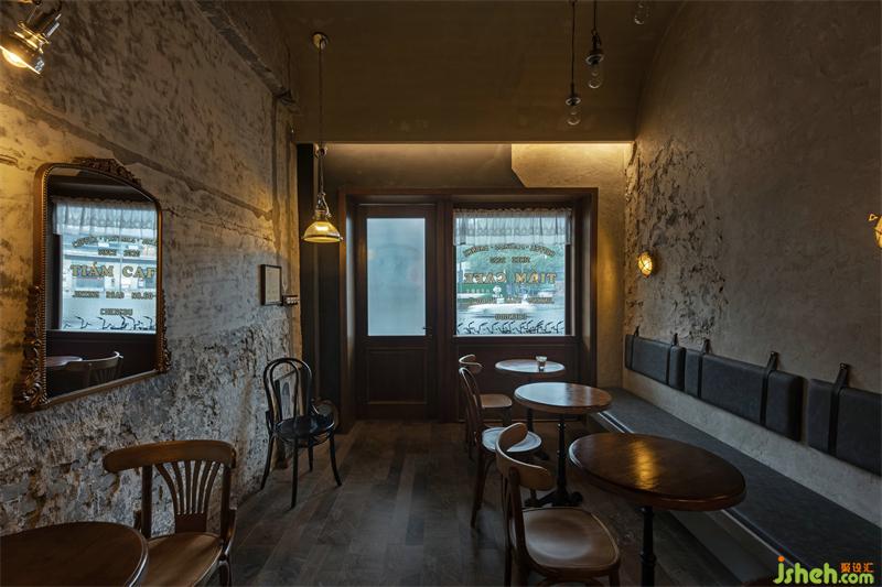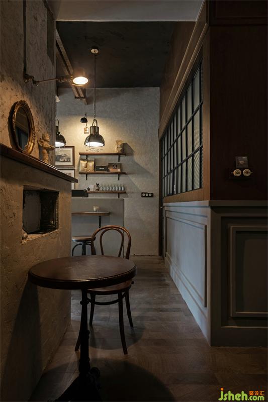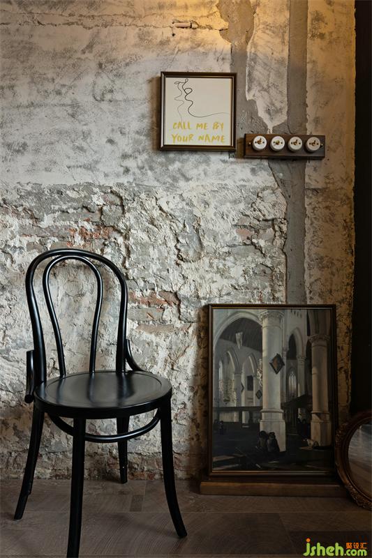 现材:将原墙面,以看似随意而艺术的方式凿毛墙面的处理,原店铺剩下的老木头拆除时已破损,就地取材,将就原来的质感保留下来,以至于空间随性、包容的空间感受。