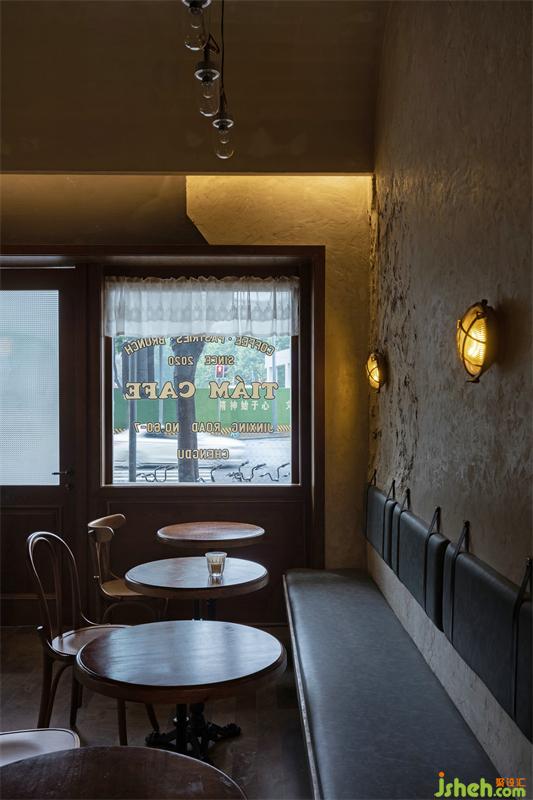 情绪:整体咖啡馆设计采用大面积的中性咖啡及咖啡气泡的颜色、以及深色漆面运用,让进入空间的人静下来,沉浸进去,做旧铜灯照射的灯光,微微给人微醺的感受,铁艺艺术玻璃透过灯光,给人梦幻的想象场景。空间中仿佛罩了一层滤镜,从而营造情绪化空间氛围。