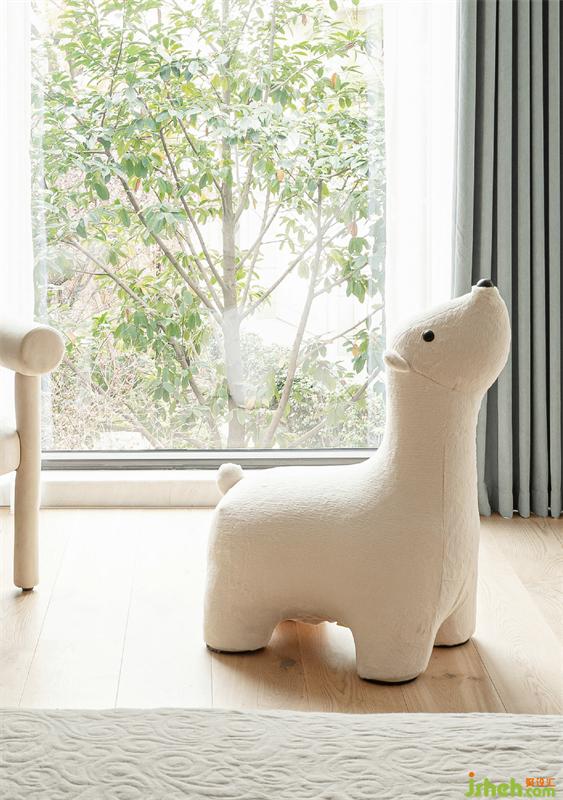 After adjusting the layout of the master bedroom space, the storage function is added, and the bedroom, cloakroom and bathroom are connected and independent from each other. The top light without the main light is clean and profitable, the background light is warm, and we chose the table light for the middle lighting, which can be replaced in the future according to our own preferences. The addition of new partners will give the home a new vision.