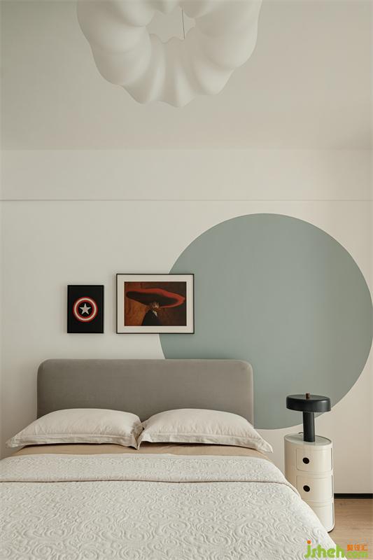 The bedroom is a space that needs comfort first. We have made a selection on the texture of the material itself. The fabric backrest bed, wooden veneer, and light-colored art paint together create a sense of tranquility and warmth.