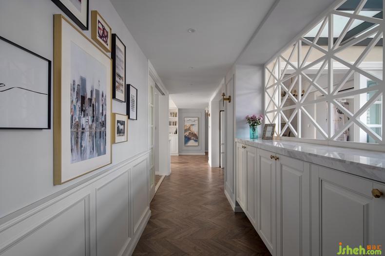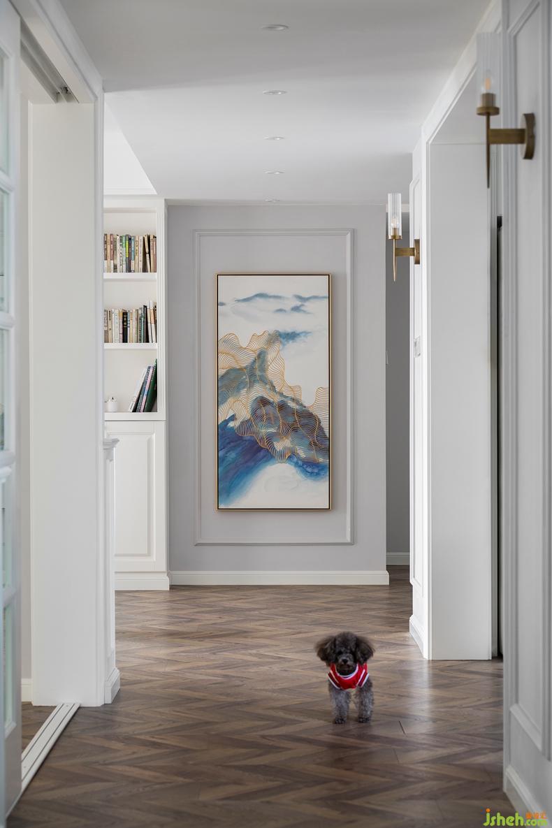 书房采用玻璃移门,为走道带来充沛的采光。走道尽头一副抽象派装饰画,增添雅致的韵味。合理的动线,让爱犬皮皮可以尽情的在家里撒欢。