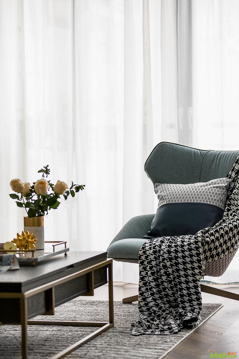 客厅与书房之间,同样采用玻璃隔断,让空间互动性更强,也最大程度提升了采光。