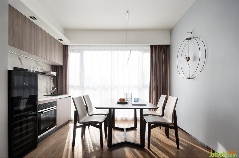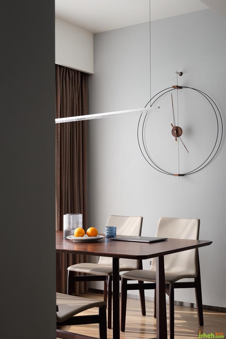 △手机照。设计感十足的挂钟做餐厅的点缀,寥寥几根线条就能描绘出时尚与艺术,就是安装的过程中花费了一番功夫。深圳设计公司