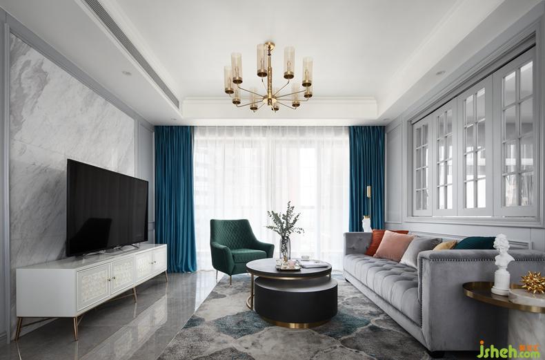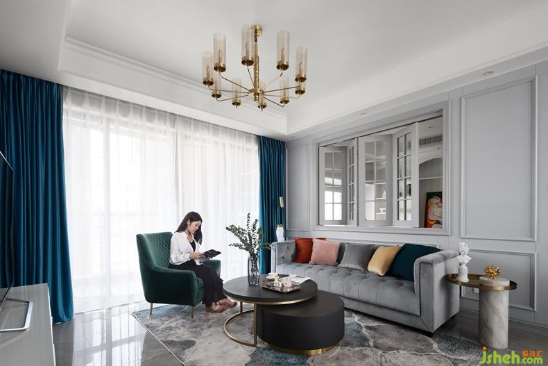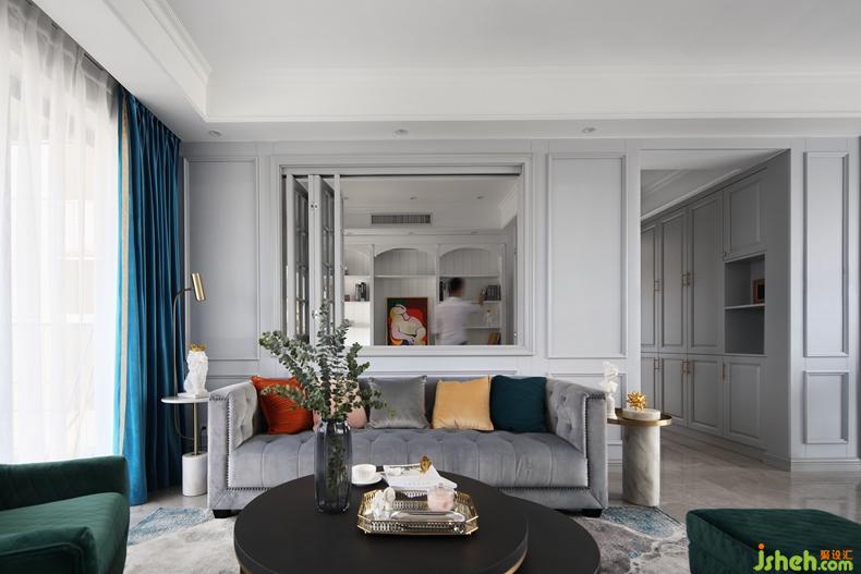 △沙发背景墙摒弃传统墙面,开了个折叠窗,让客厅与书房二者相通,增加两个空间的流动性和互动性。男屋主在书房工作,女屋主在客厅娱乐,安全感就是,一抬头,你就在眼前。
