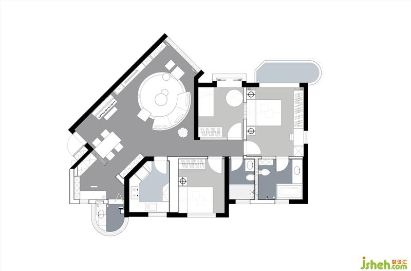 1、围绕异形客厅采用圆形围合式客厅,告别单调传统客厅。