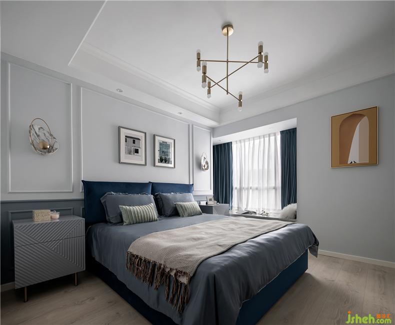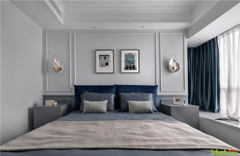 主卧运用了多种深浅不同的蓝色系,将静谧舒适的尺度拿捏的刚好,不会过于单调,也不会过于繁琐