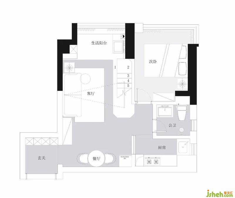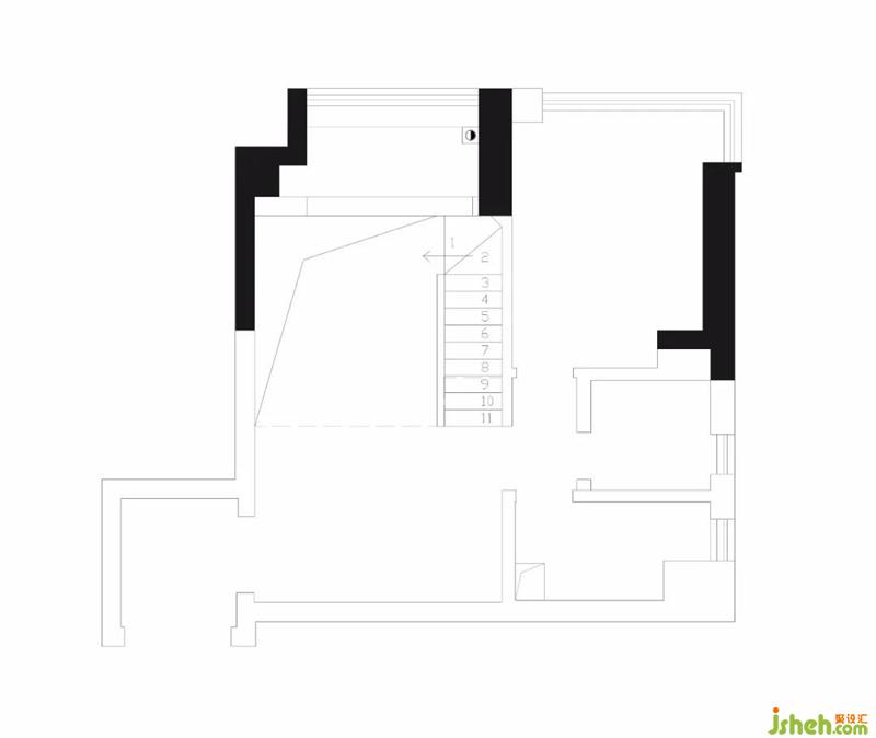1.将楼梯改为镂空踏步样式,使室内采光不受影响,消除空间局促感;