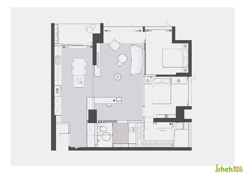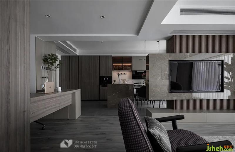 3. 设计开放式书房,满足在家办公的需求,书桌还可变身成为小酌之所!空间机动性大大增加!