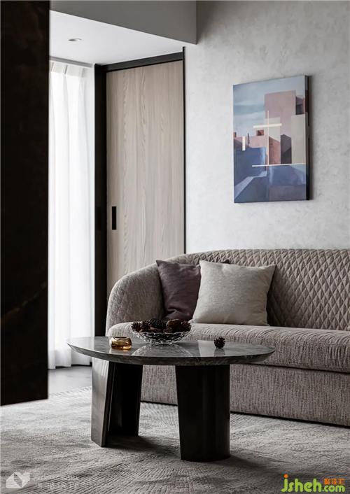 Based on low-saturated gray and white, it creates a casual and comfortable space atmosphere and quietly relaxes the mood. The regular stone is embedded in the smart wooden grille, which combines rigidity and softness, enriching the local spatial connotation.