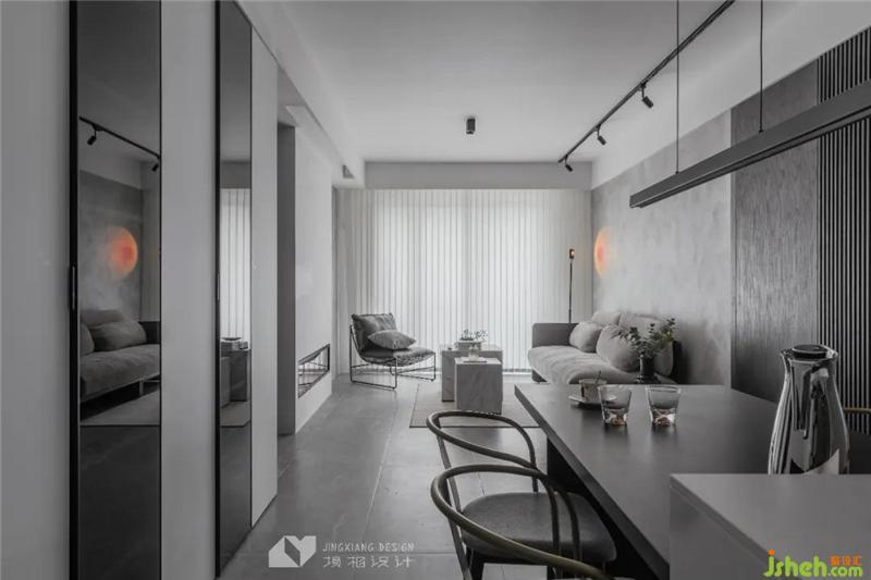 The whole wall high cabinet extending from the porch to the dining room is designed according to the space function to meet the diversified storage needs of the owners on the basis of ensuring the unified line of sight.