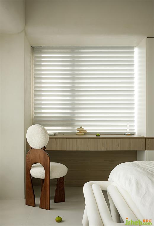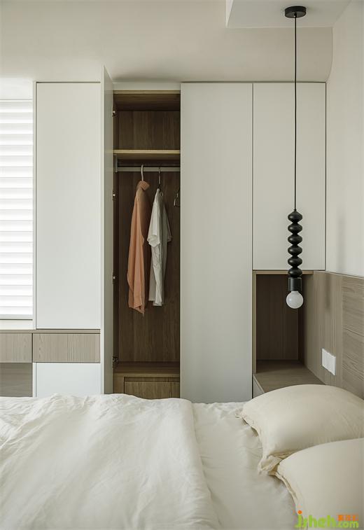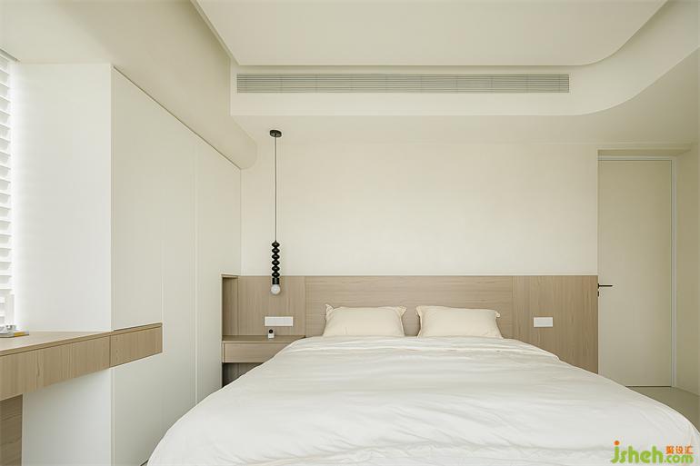 主卧扩大了进门玄关并增加衣柜,内推了主卫,境相设计再将原直角导圆处理来弱化空间的锐角。