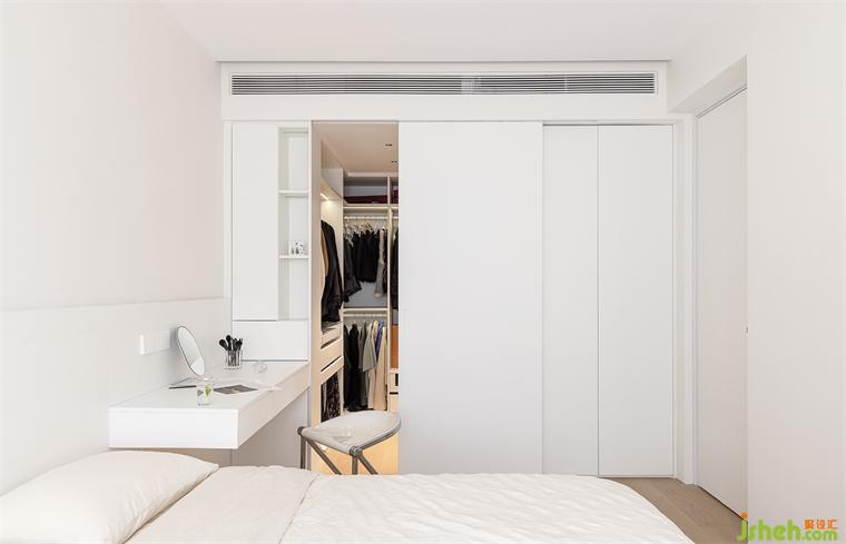 主卧经由改造,从一个长方形盒子,蜕变为拥有步入式衣帽间和洄游动线的套间。借助灵活移门做隔断,由玄关可进入衣帽间后,可快速更衣,或前往主卧休息,不仅强化了主卧的隐私,而且小家整体动线也更加井然有序。#衣帽间#主卧#洄游动线