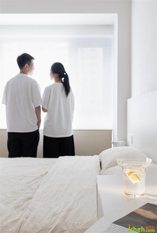 4、主卧设吊轨门,隔出独立的衣帽间,一并实现空间的内外联动,构建趣味的环形动线。