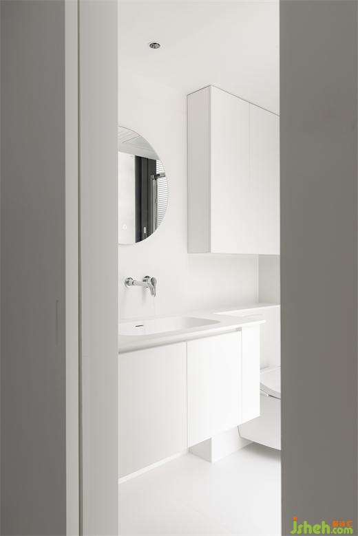 卫生间是一个完全的纯白空间,通透明亮度感人。外挂的吊轨门,为卫生间争取更多使用空间,淋浴房独立隔断,改变了原卫生间干湿区混合的尴尬处境,大幅提升了卫浴的功用效率。