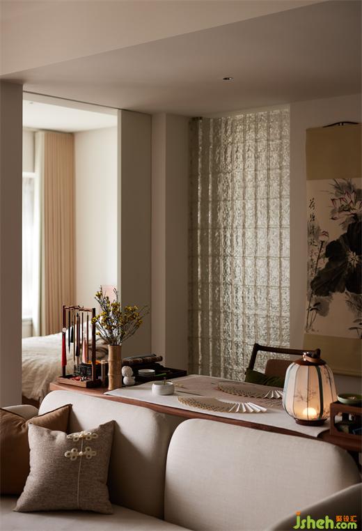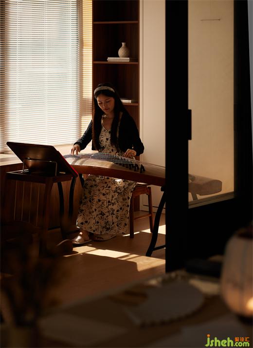 次卧:两个次卧打通,合并为多功能室,作为办公、古筝、临时休息区。大开间玻璃移门,视觉通透,拆除客厅墙体内退,房门打开后,客厅与次卧视觉得到最大限度延伸。