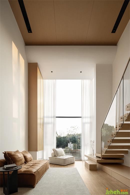用简约暖色的材质营造舒缓氛围,用不墨守成规的功能连结,赋予屋主独特的动线扭转,时间随着恣意流动,叠拼别墅装饰包裹着简单舒适的生活。