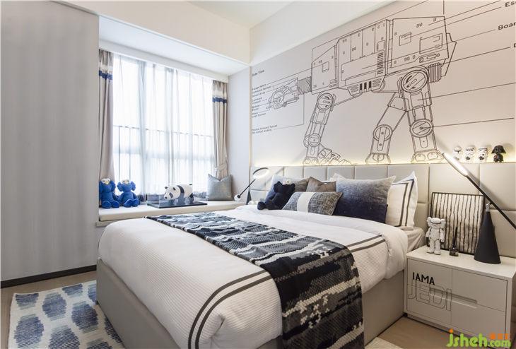 在主卧室,由于主卧床尾电视柜已具备梳妆台功能,设计师在原本放置梳妆台的位置改成放置一张休闲椅,让居者感受到更美好更舒服生活。