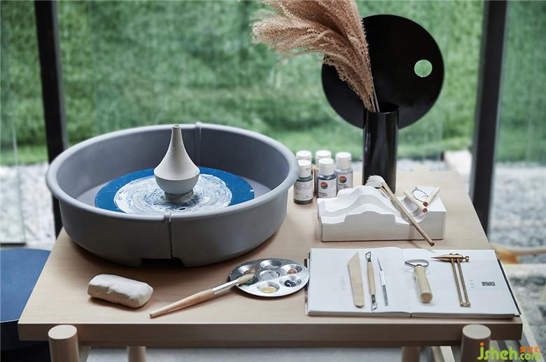 阳台一隅,设置了简单的陶艺工作台,生活与爱好在此间,得以随意而自由地切换。通过细节的打磨,展示出居者对理想生活的美好期待。