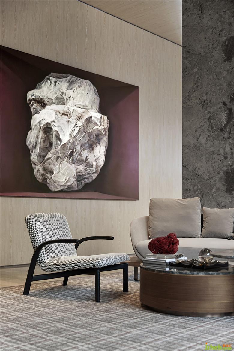 VIP室的设计把点亮空间的任务留给了绾色,通过材质的对比与艺术挂画的意境,营造自然、沉稳、温润的氛围。