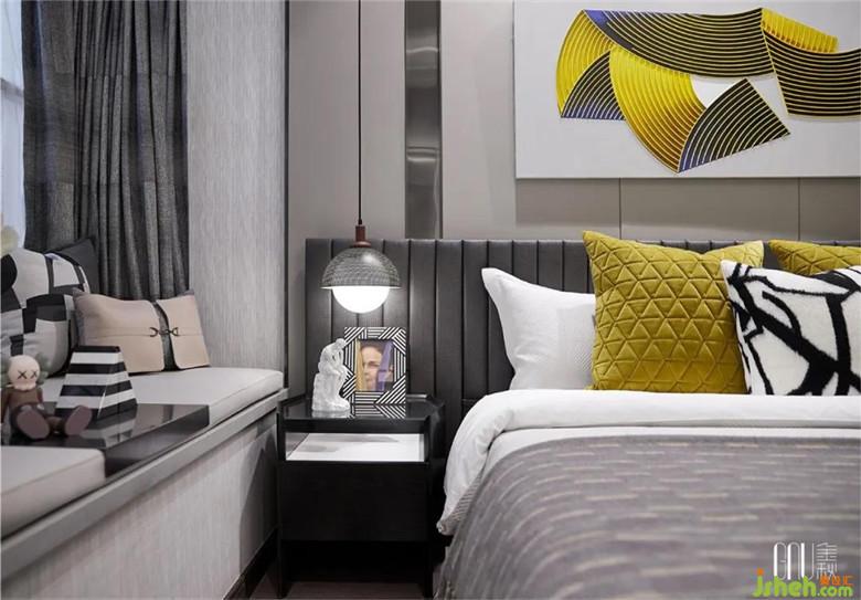 有趣的灵魂得以在卧室作短暂歇息,细节堆积的精致最能凸显个体品味。垂下的灯饰被思考者雕塑的光芒所照耀。