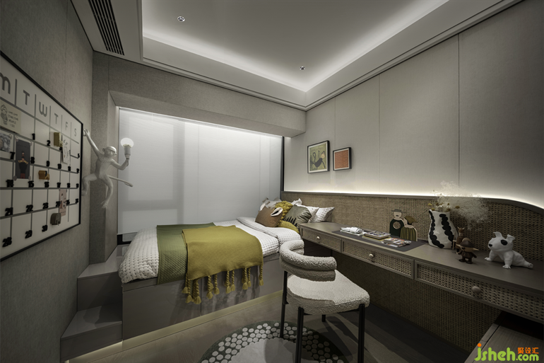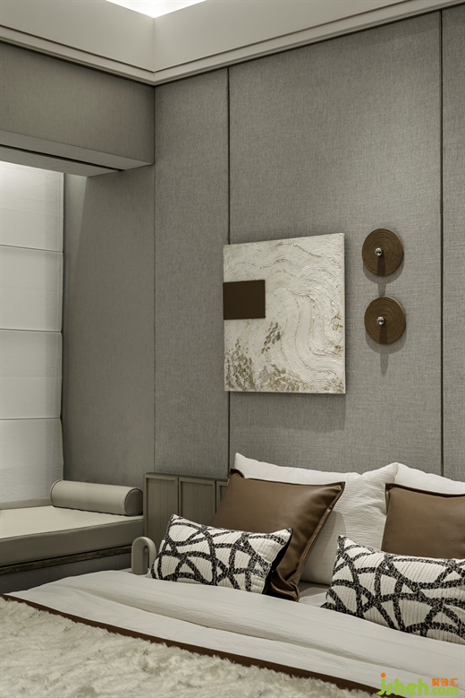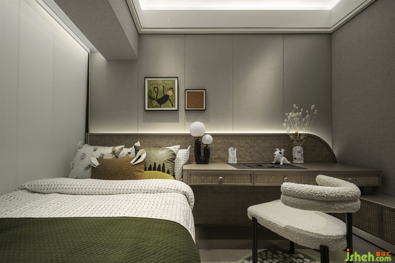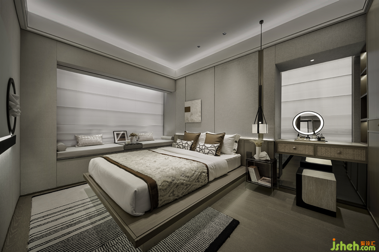 建面72㎡的空间,规划设置了2+1房,且每个房间皆拥有舒适的空间尺度。在样板房设计策略上,极致利用6处飘窗承载储物,最大限度地将功能空间释放出来,并赋予空间多元复合的功能属性。在视觉的呈现上通过利用镜面玻璃将空间放大、延长,家具则尽量做低或选择“矮”规格形式,样板房设计以营造高、阔的空间视觉效果。