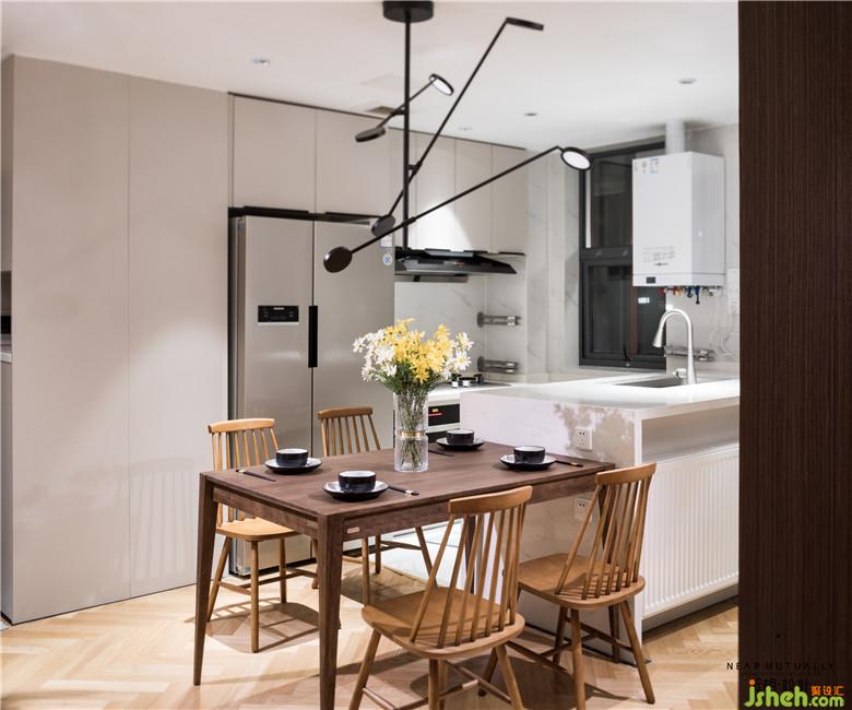 厨房改成开放式厨房,增加岛台餐台,使餐厅厨房一体化。