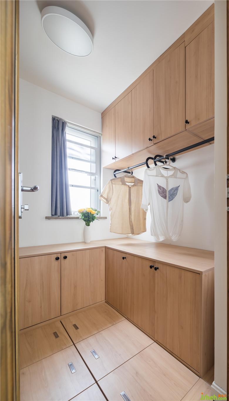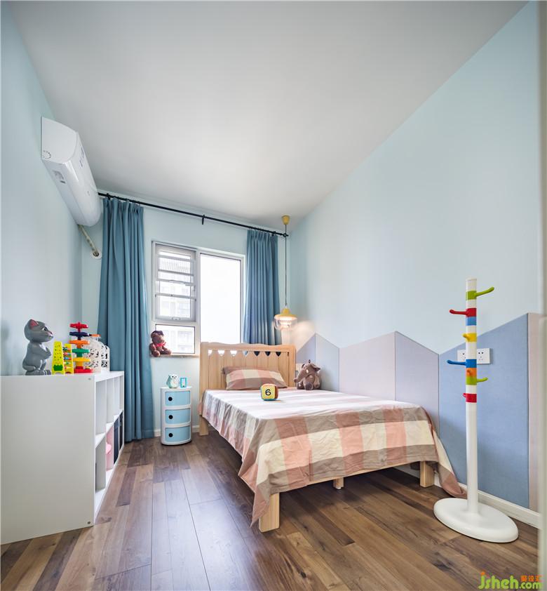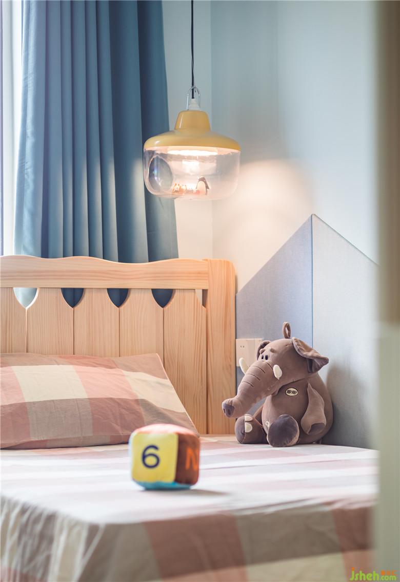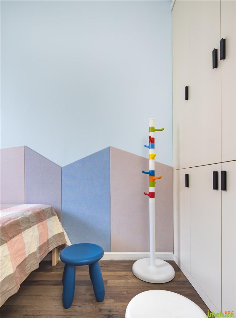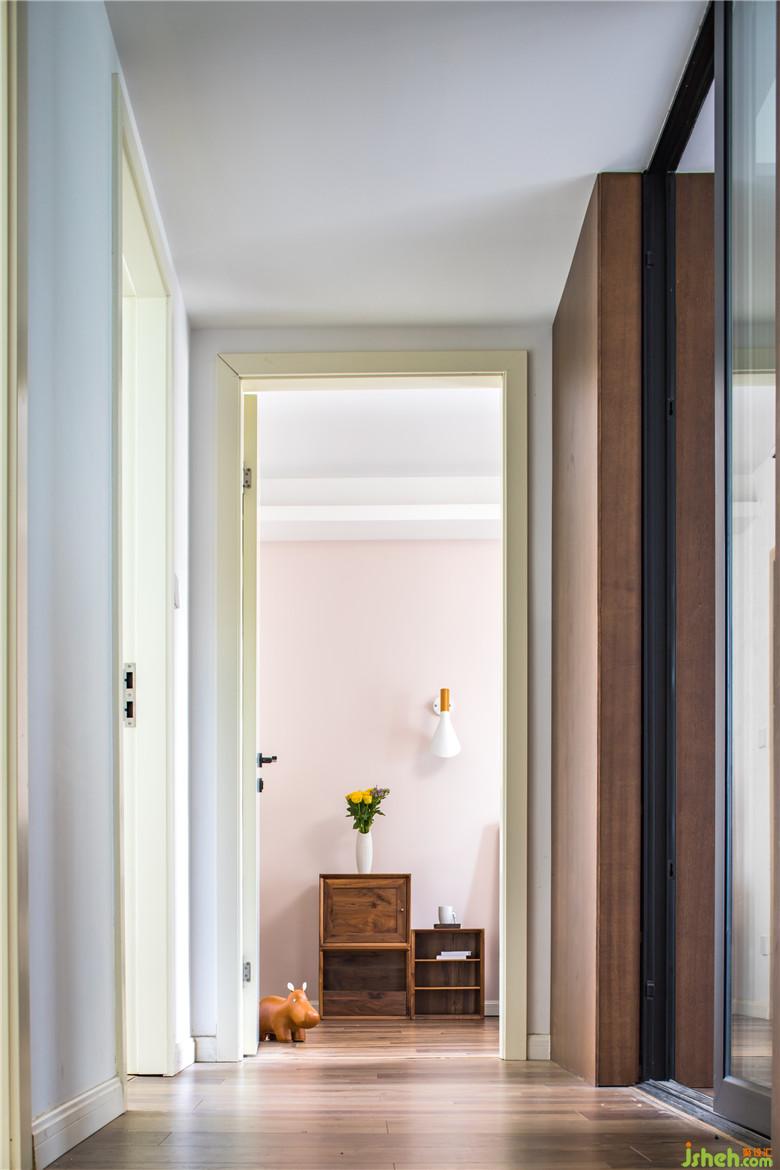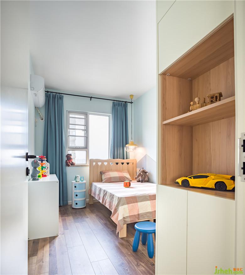 入户正对的房间客户计划作为小孩房的,室内设计师去了现场观察后决定此处作为书房来使用,虽然这边有阳光,主要考虑是屋主的生活习惯,白天在书房的时间会很多的,再次处晒晒太阳看看书,陪伴着小孩玩下会变得惬意起来。而北边房间作为卧室,这样也能把动区和静区分开。
