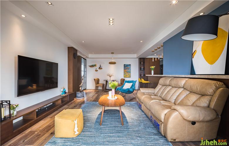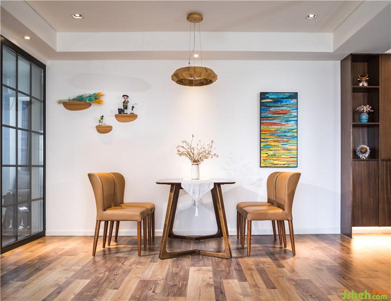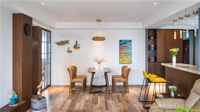 而北边房间作为卧室,这样也能把动区和静区分开。特别通过室内设计师特别处理,在书房过道处做了二道通透的隔断,这样不管从厅里哪个角度看过去,或者从书房看向外部空间,视野变得通透,开阔,互动性也会更强,同时也能阳光引入客厅来。