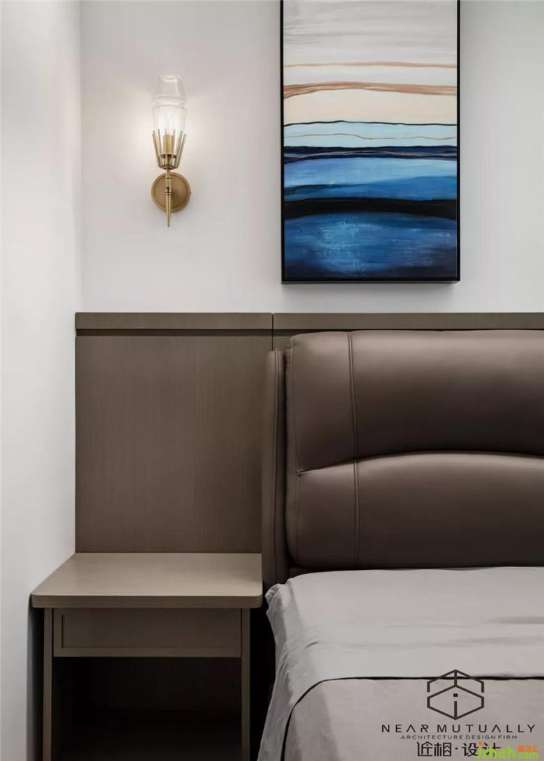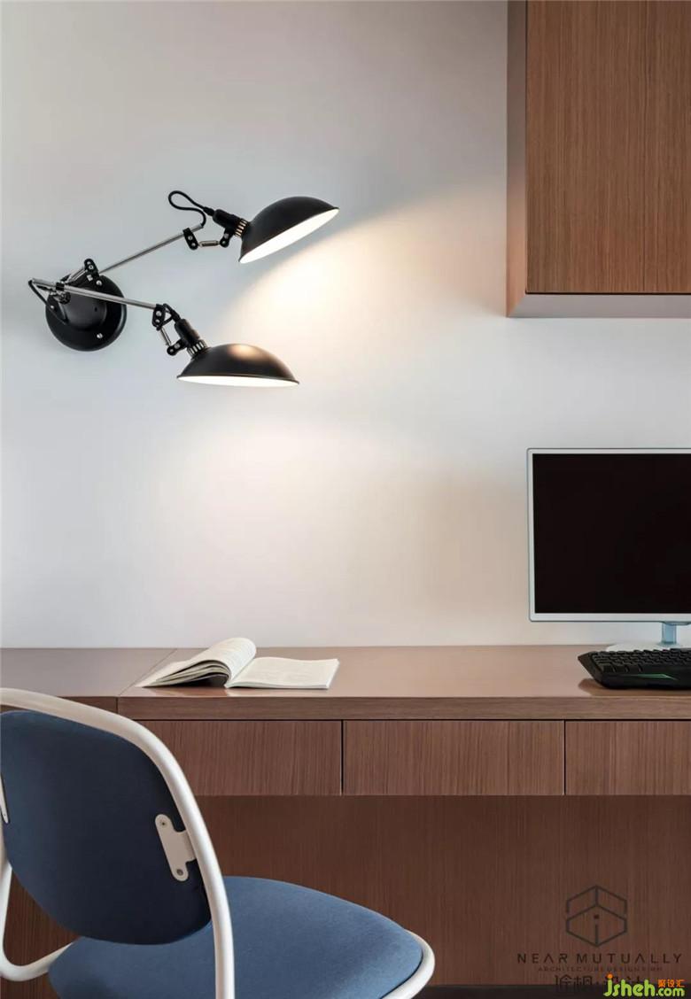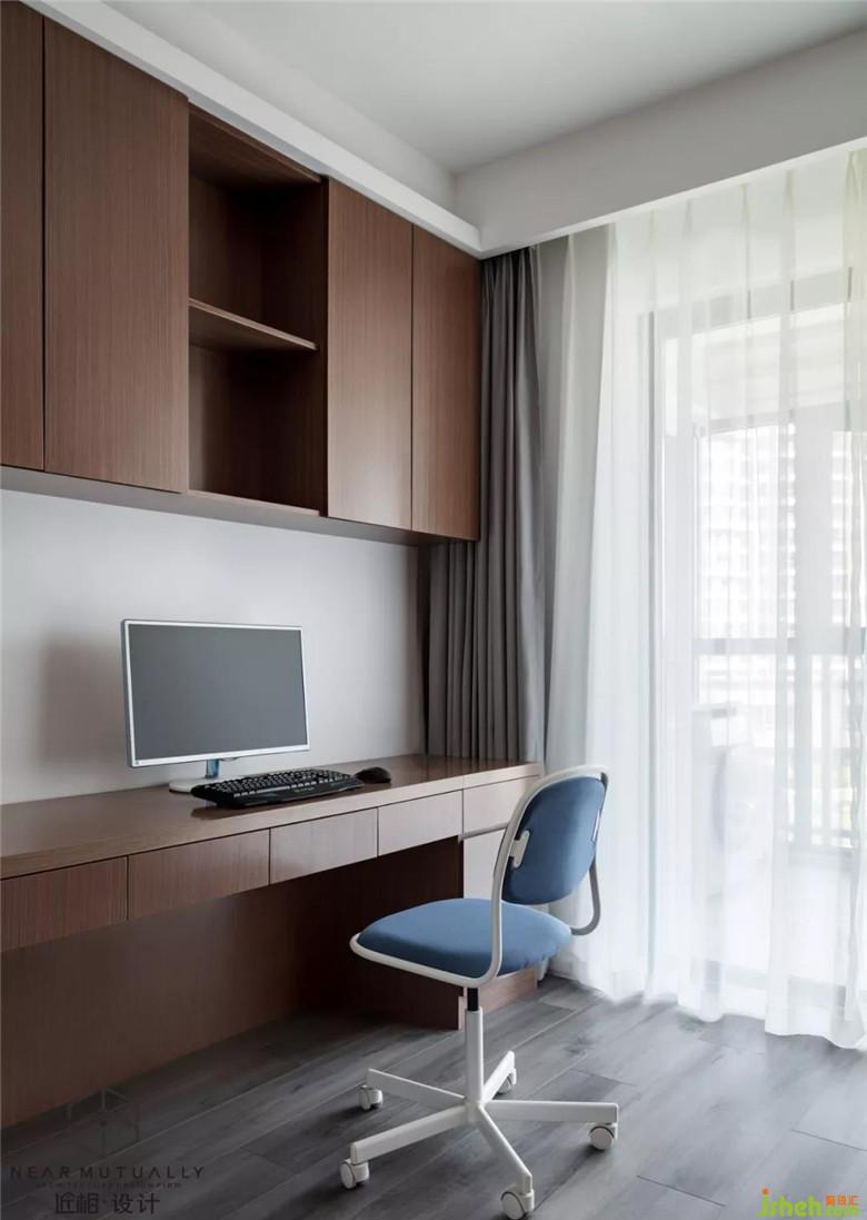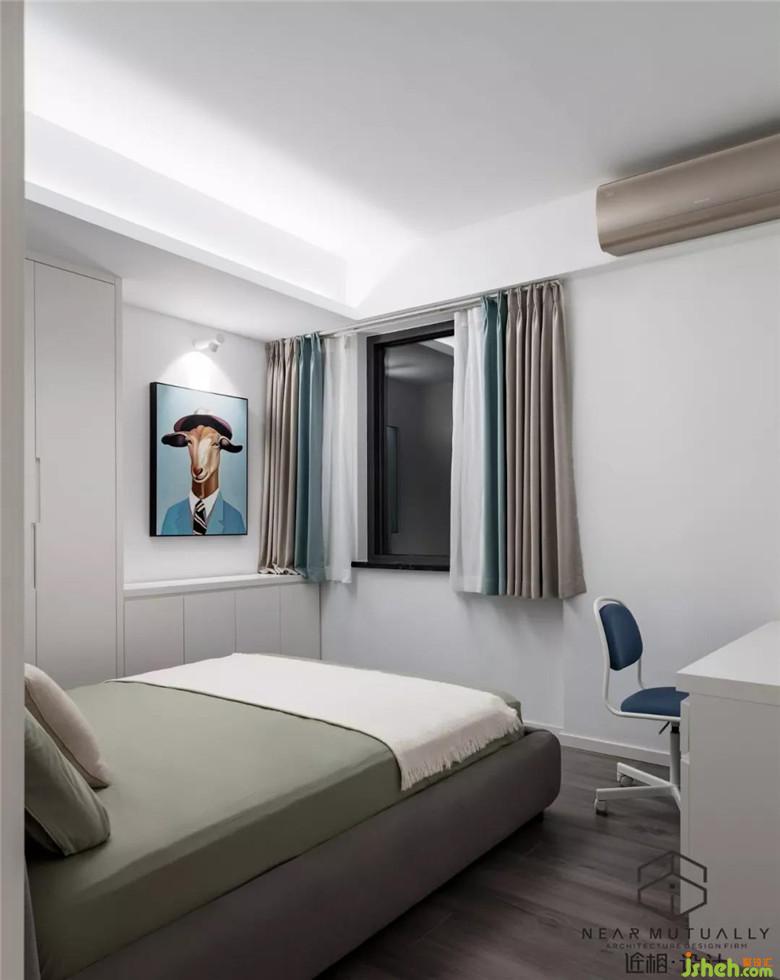 考虑到只需要两个卧室,客人也是偶尔来住,使从客厅里看书房时空间更干净大些,于是在柜子里设计了一个拉升床。美观又实用升了使用空间。