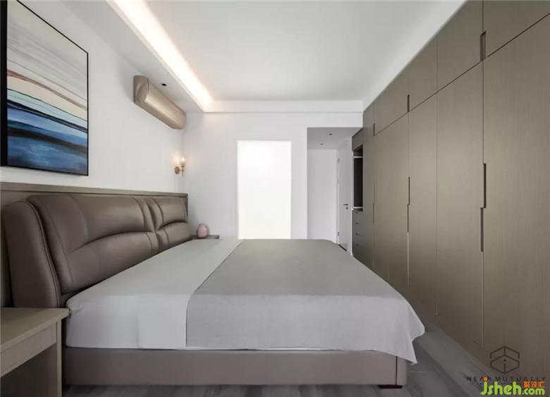 主卧原本空间较小,在卫生间改动后显得更小。因为原本阳台较大所以在设计上把阳台通过移门一分为二,一边作为生活阳台,一边作为主卧部分。