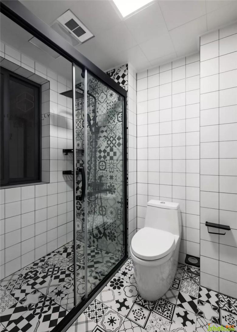 装修公司将原有的客厅打开在次卧和客厅还有卫生间通道区域设立干区。使卫生间功能更加强大,有明确的干湿分区。