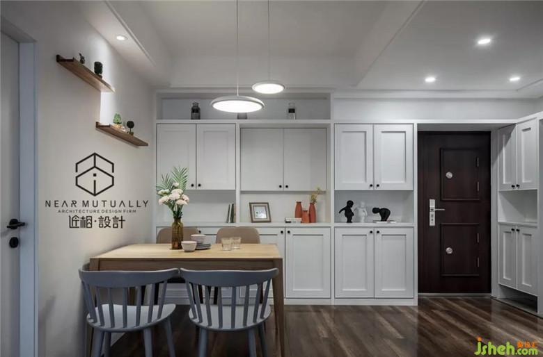 ▲更具餐厅的改造后的结构,做了一个围合式的满排展示柜,增加储物量,同时可以在柜子里放满书,零食,瓶瓶罐罐等物品。餐桌装修公司选择了可变性餐桌,不用担心人多的时候用餐了。
