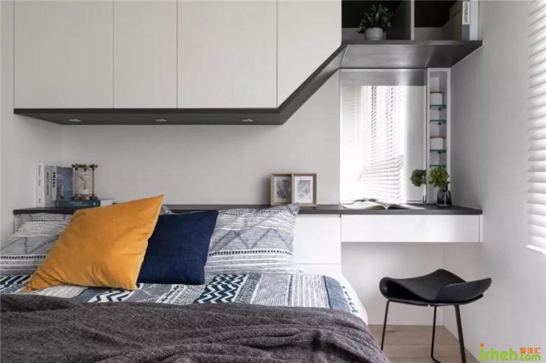 主卧室是主人的休息空间,简洁的黑白色柜子作为床头背景,不对等的线条拉伸视觉效果,柔和的色调让在空间中无限遐想。装修公司