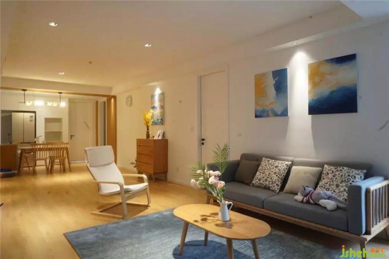 白色作为客厅的主色调,呈现出简洁大气的空间视觉效果,装修公司再辅以木色,营造出温暖舒适的家庭氛围。