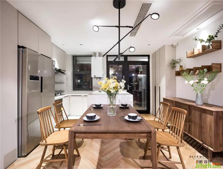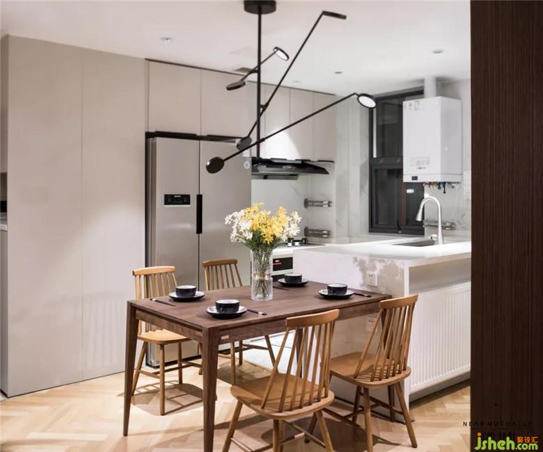 增加岛台餐台,使餐厅厨房一体化,让空间使用得以物尽其用.
