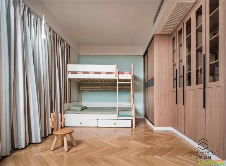 原有结构是三个小小的房间,装修公司通过把书房与儿童房打通,做成了一个整体房间,使得小朋友有更多独立玩耍的空间;