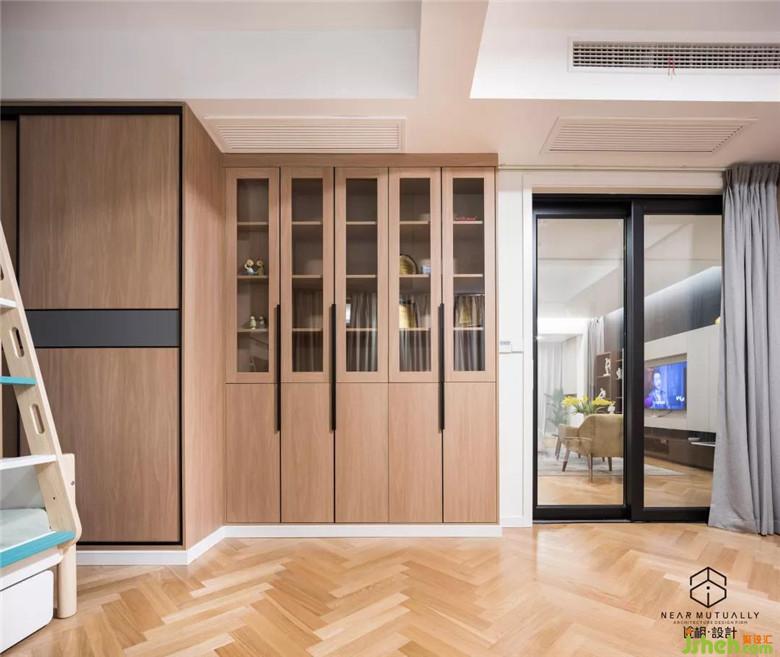 我们使用玻璃移门作为隔墙,一方面使得使空间变得通透,增加了互动性,另一方面可以满足父母需要关注及照看年幼孩童的需求。