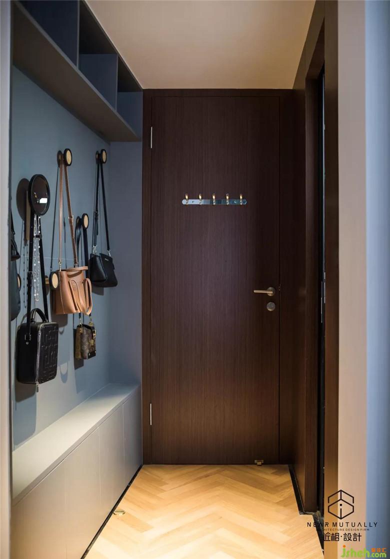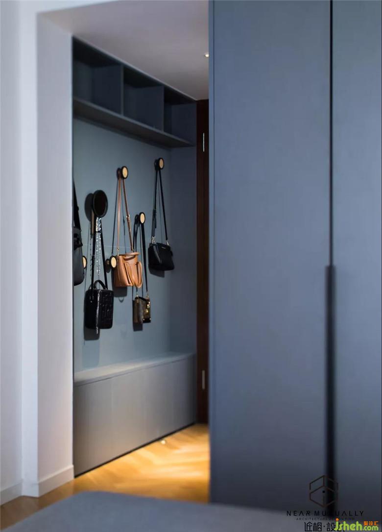 主卧墙面处装修公司设计了跳色的艺术挂钩