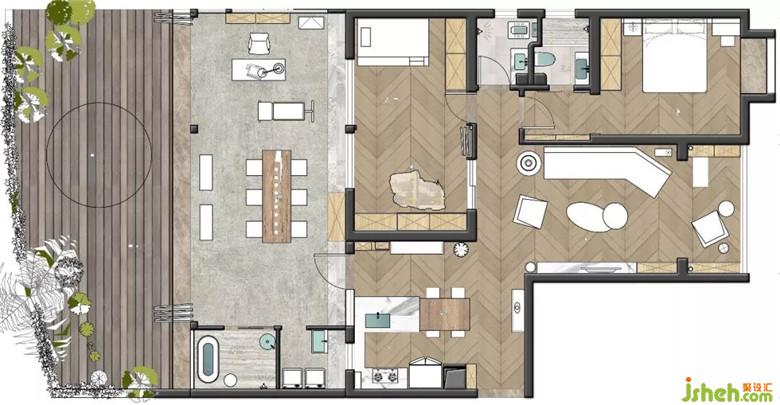 露台搭建了一个功能阳光房,地面保留了原有的户外木.