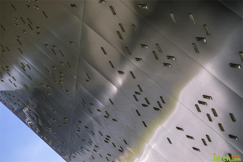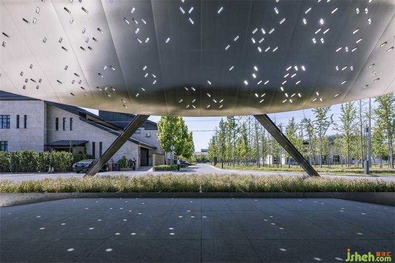 X字母也被用作美术馆的主要标志,在入口处呈现为两根相交的H形结构柱,为宽阔的弧形屋顶提供了支撑。美术馆设计屋顶表面上的穿孔能够滤过光线,在入口空间投下光影。由两条线组成的“X”图形还寓意着最基本的交互形式,与美术馆在多学科方面的努力形成呼应:除了艺术家之外,X美术馆还展示来自建筑师、科学家、工程师、音乐家和设计师的作品。