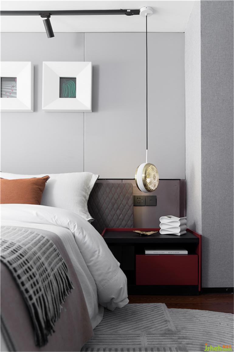 素白、米咖与复古红色的碰撞,棉麻布艺与金属的融合,设计以不同材质与颜色的对话,令空间焕发崭新的活力。同时为提升其利用率,设计巧妙规划二层布局,将另一侧划分为坐台与衣帽柜,有效解决主人的收纳问题。