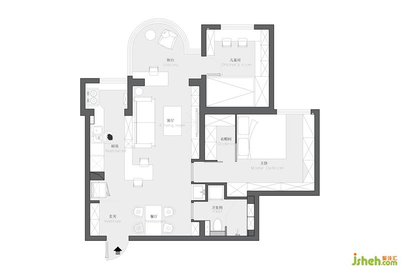 女儿在沙发上看电视,或者在茶几上在拆这周买回来的POPMART盲盒。妈妈Rebea在厨房炒菜,时不时转头对坐在阳台看书的爸爸MrWrong嚷着少抽点烟。贯穿这段生活预演的场景,需要在户型中实现公共空间一体化。