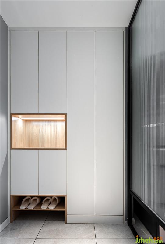 入户柜极大提升空间的利用。内嵌的感应灯带作为过度光源,让深夜回家,进门开灯的一瞬间不再晃眼。