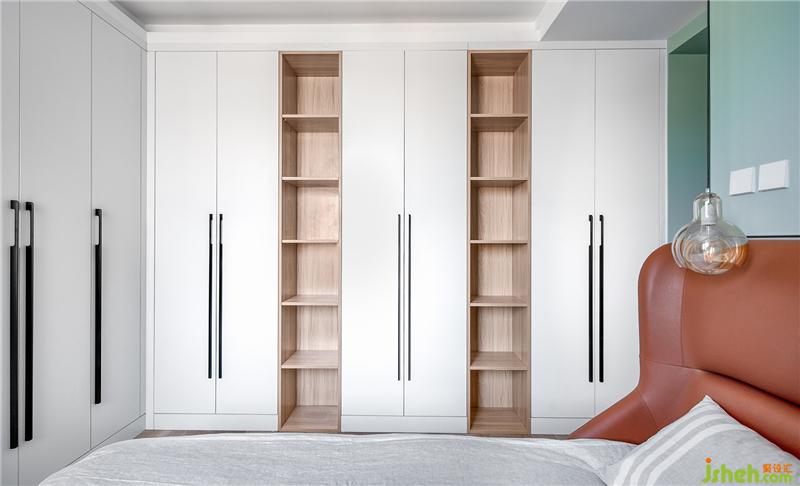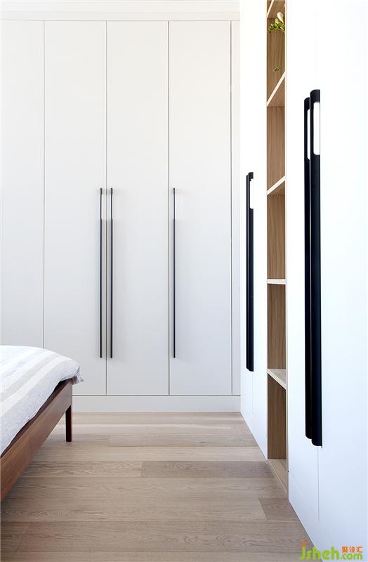 简单干净的折角平板柜,足足有5100mm的延长尺寸,充分发挥卧室最大的收纳容积量,可以把MrWrong一家所有的衣物全部塞到里面。